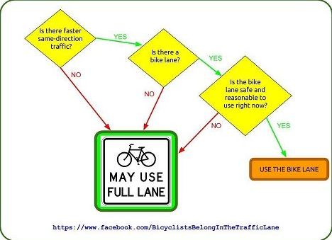 | Below is a simple diagram that will explaining proper thought process in bike lane use. Keep in mind the AZ law, statute 28-815 Riding on Roadway and Bicycle Path; Bicycle Path Usage. |